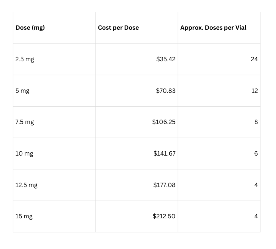 Each vial contains 12.5mg total